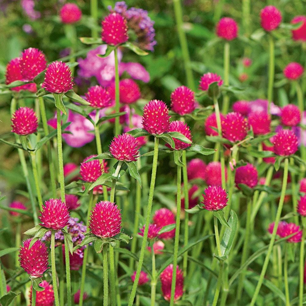 Glowing, 1 1/2" carmine blooms on long stems. This uncommon color is unique to the QIS™ (Quality in Seed) Series. Also known as globe amaranth and Rio Grande globe amaranth.